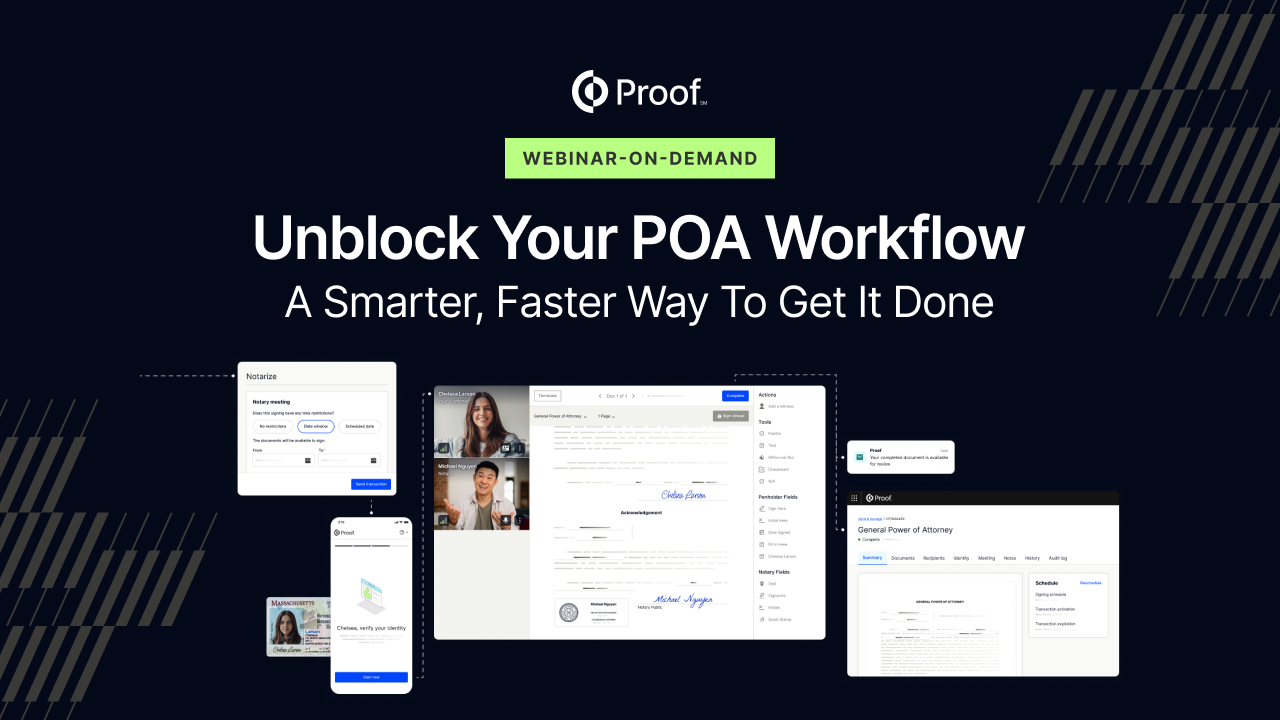 Proof is proud to launch an on-demand, remote witness solution – available 24/7. Now anyone can complete important transactions with a seamless, convenient signing experience.